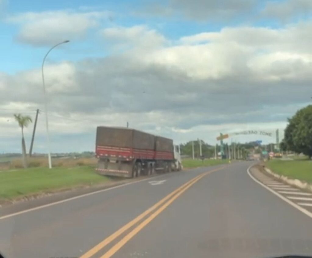Carreta desgovernada causa destruição no centro de São Tomé após motorista ser atacado por abelhas