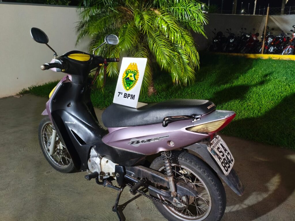 Durante a madrugada desta sexta-feira (21), a Polícia Militar realizou uma abordagem que resultou na apreensão de uma motoneta em Cruzeiro do Oeste. A ação ocorreu por volta das 00h, durante patrulhamento de rotina.