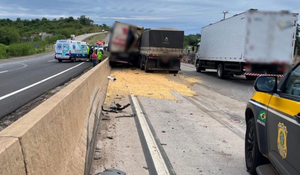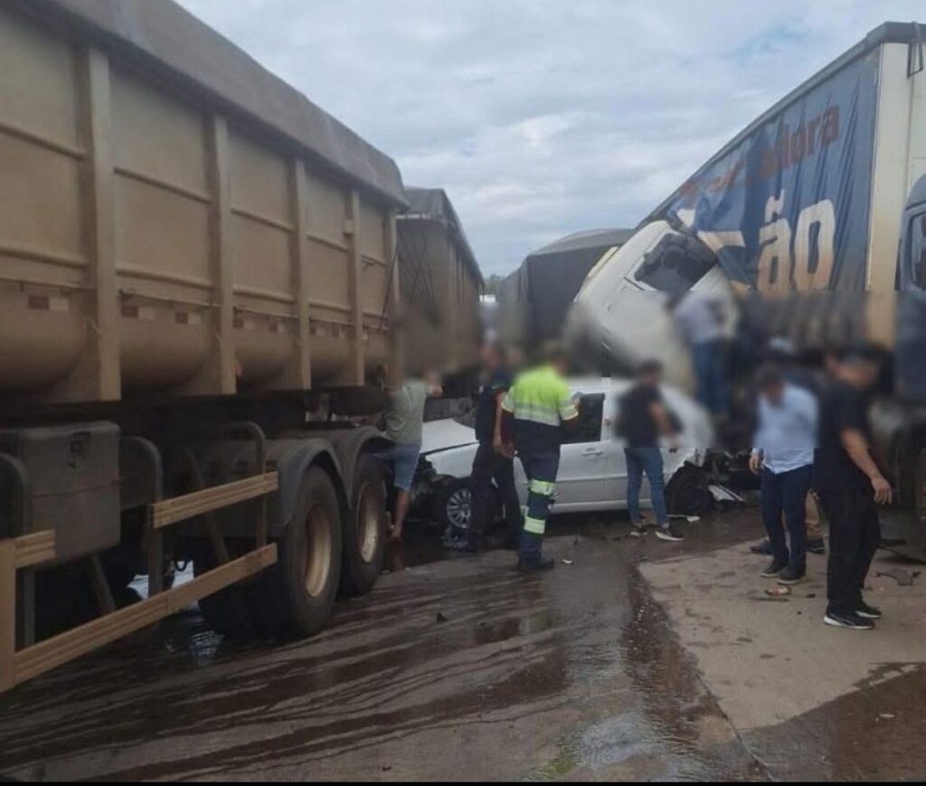 Um grave acidente foi registrado na tarde desta terça-feira (7) na BR-163, altura do quilômetro 161, envolvendo cinco carretas e dois automóveis de passeio. A colisão em sequência resultou na morte do motorista de uma das carretas e deixou outras cinco pessoas feridas.