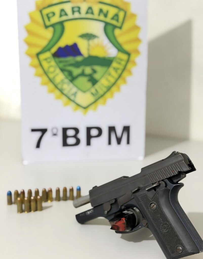 A ocorrência foi registrada por volta das 5h30, no bairro Vila Guaíra. Durante a averiguação no imóvel, autorizada pela moradora, os policiais localizaram uma pistola calibre .380 com numeração suprimida e 15 munições intactas escondidas sob o fogão.