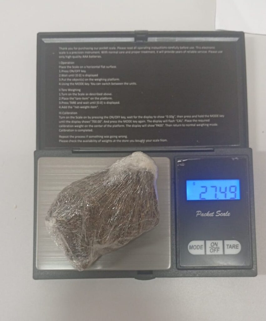 Já com o passageiro, um jovem de 22 anos, foi localizada no bolso traseiro da calça uma porção de substância análoga à maconha, acondicionada em invólucro plástico, totalizando 27,49 gramas.