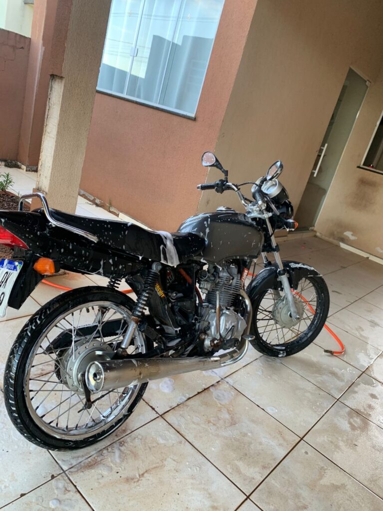 A moto foi roubada, e a dona registrou boletim de ocorrência na polícia local. Ela alerta que precisa muito recuperar a moto, pois depende dela para trabalhar.