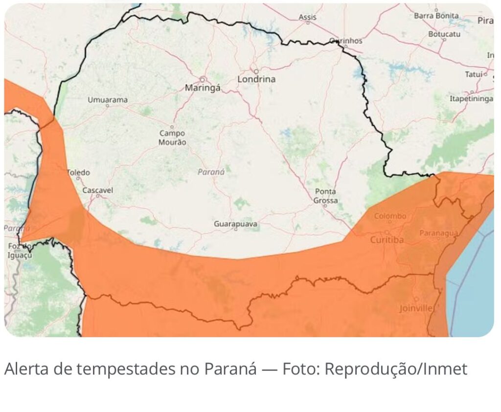 De acordo com os avisos meteorológicos, 135 municípios paranaenses estão incluídos no alerta mais severo, que abrange principalmente o sul do estado, além de áreas do leste e do oeste. Nessas regiões, as rajadas de vento podem atingir até 100 km/h, acompanhadas de pancadas de chuva fortes e descargas elétricas. Para o restante do Paraná, há um alerta de perigo potencial para chuvas intensas ao longo do mesmo período.