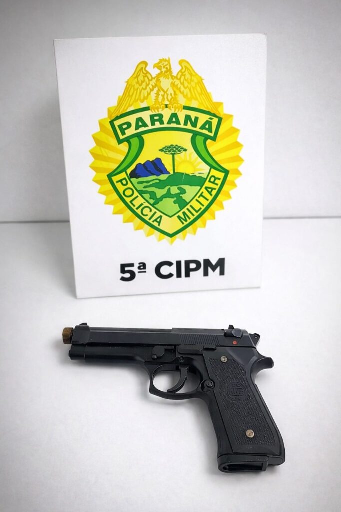 Durante a ação, o passageiro da motoneta, um jovem de 18 anos, fez menção de portar algo na cintura. Diante da atitude suspeita, foi dada voz de abordagem. No momento da revista, o indivíduo dispensou ao solo um objeto preto, posteriormente identificado como um simulacro de pistola.