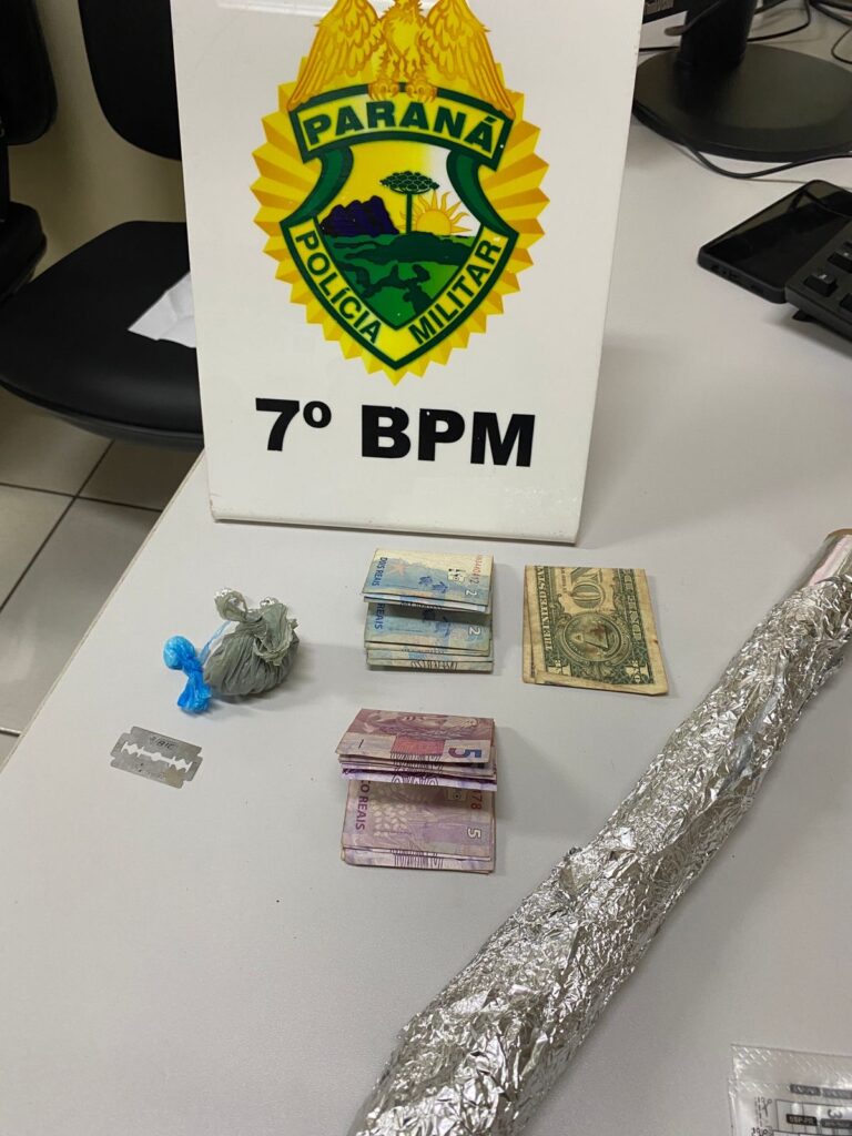 Durante a ação, foi localizada com um dos abordados uma porção de cocaína. O homem relatou ter adquirido a droga com o outro indivíduo, que também foi submetido à abordagem. Com ele, os policiais encontraram porções de crack, maconha, papel alumínio e dinheiro em espécie, em notas de dois e cinco reais, situação que caracterizou o crime de tráfico de drogas.