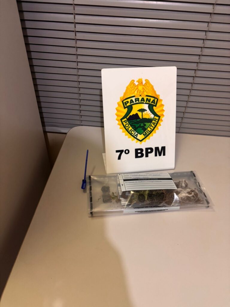Durante a abordagem, foram identificados dois adolescentes, ambos de 17 anos, e um jovem de 18 anos. Em revista pessoal, os policiais localizaram porções de substância análoga à maconha nos bolsos dos menores, que, após pesagem, totalizaram 26,2 gramas.